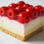 A no-bake layered dessert featuring a buttery crust, creamy filling, and a vibrant cherry topping, perfect for any occasion.