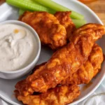 Now, toss those pieces into your air fryer. Spray with a little oil if you’re into maximum crunch. Air fry at 400°F for about 10-12 minutes, flipping halfway. While the magic happens, melt butter with your favorite buffalo sauce. Once your chicken strips are crispy and done (oh, you’ll know when you see that gold), toss them in the sauce. Yes, use tongs. Or go wild and shake in a big bowl. I say live dangerously.