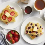 If you’re baking for picky eaters, just section the pan. Maybe strawberries on one side (for Grandma), blueberries on the other (for me, obviously), or leave one strip plain in case someone threatens “I don’t like fruit.” Switch out milk for almond or oat if dairy isn’t your thing. Pancake freedom.